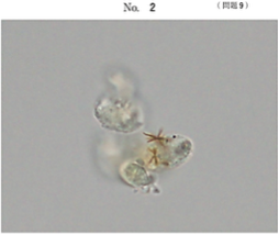4. 幼稚園で肛囲検査法 ( セロファンテープ法 ) による虫卵検査をおこない , 1人の園児から虫卵が検出された. 虫卵の写真を示す.