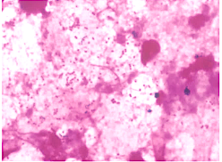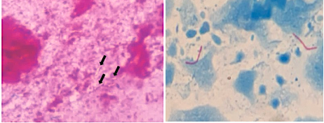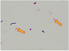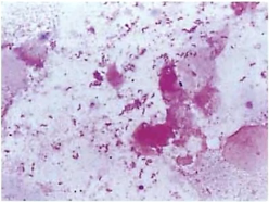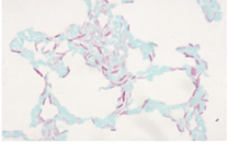 - 細胞壁の豊富な脂肪酸によりグラム染色では染色されず , 菌体がガラスの傷のように見える
